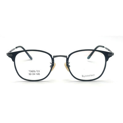 | Οπτικό πλαίσιο από τιτάνιο | Βάθμιο καλυμμένα γυαλιά τιτανίου, τετράγωνο σχήμα ματιών, ελαφρύ και λεπτό, μήκος θώρακας 145mm, μέγεθος καρέ 50-24-145, unisex. |